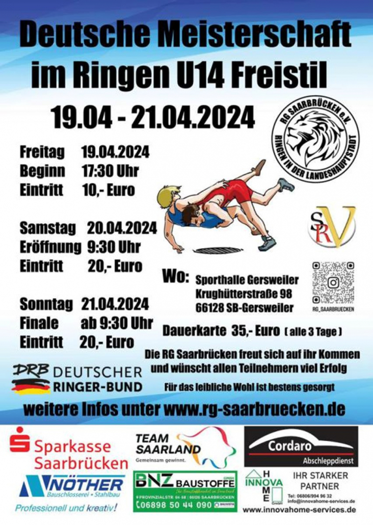 Hier gibt’s alle Infos zur DM der U14 Freistil in Saarbrücken am 19. – 21. April 2024