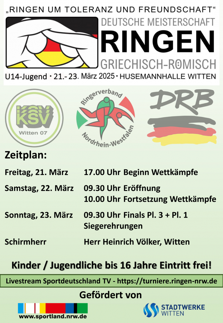 Hier gibt’s alle Infos zur DM derU14 Greco am 21. – 23. März 2025 in Witten